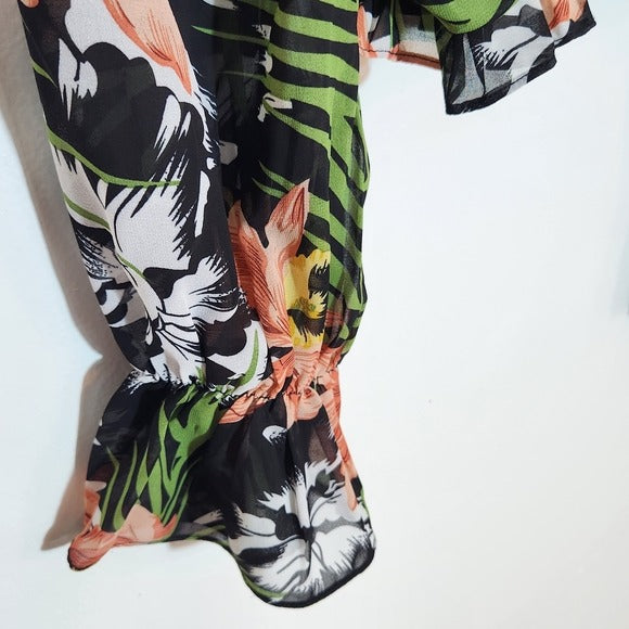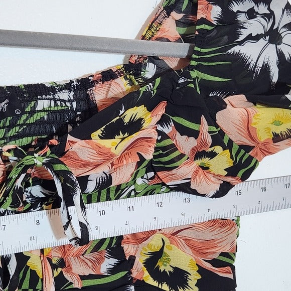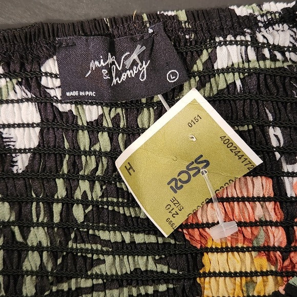 Milk & Honey Black Floral Lace-Up Cropped Blouse Size Large NWOT