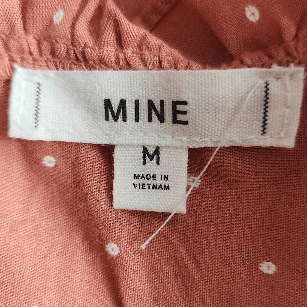 Mine terra cotta blouse with white accents and a tie at the neckline. 100% cotton fabric.