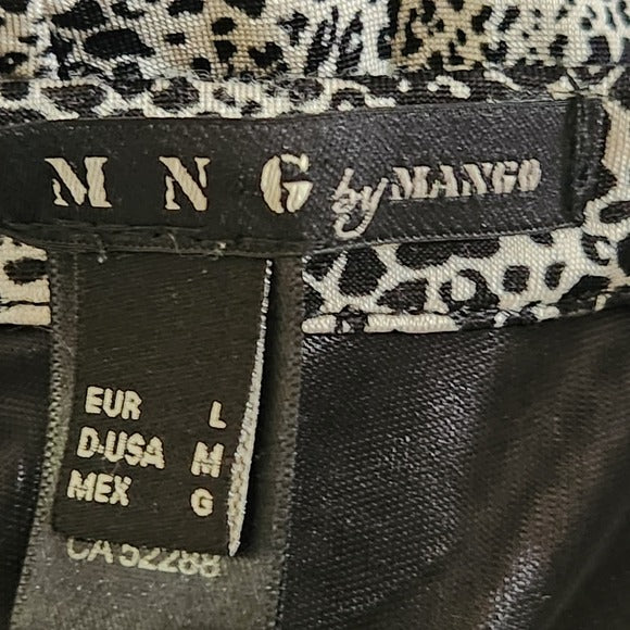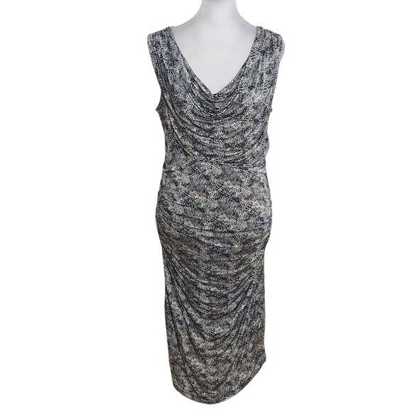 MNG Mango Black Leopard Print Ruched Draped Neck Bodycon Dress Size Medium