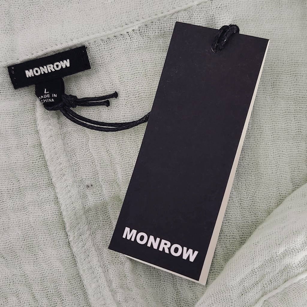 Monrow Semi-Sheer Light Green Button Down Crop Top NWT Size Large Green Crop Top