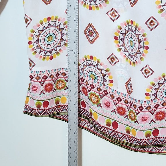New York & Company Multi-Color Red and White Sheer Blouse Size Large