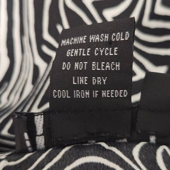 Ninety white and black blouse features 3/4 sleeves and a collared neckline. Button-up front. Fabric has a sheen and a silky feel. Great condition!