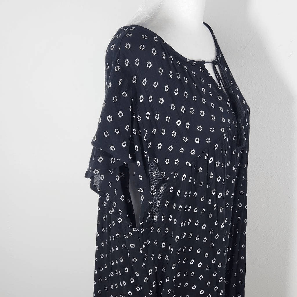 Old Navy Black Blouse with Flutter Sleeves Size XL Black and White Peasant Top