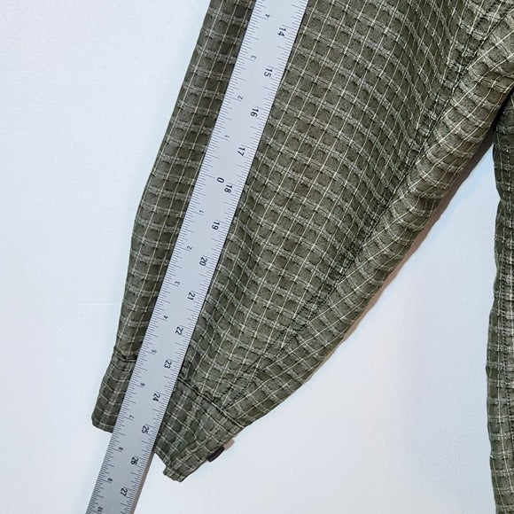 This Original Island Sport long sleeve shirt brings a relaxed green tonal check pattern in a soft rayon blend fabric that feels lightweight and breathable. Faux wood buttons and a single chest pocket add subtle charm, making it perfect for casual days, layering, or weekend adventures. Pre-loved and in excellent condition.
