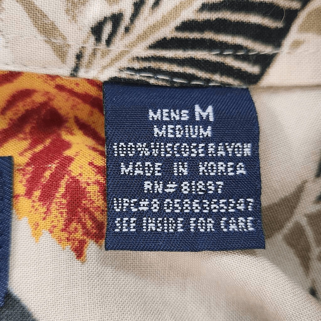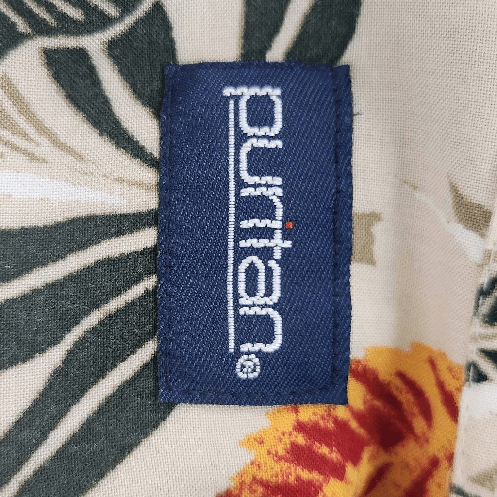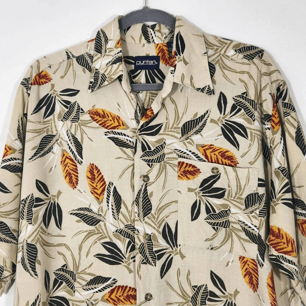 Puritan Khaki Hawaiian Shirt with Orange and Green Floral Print Size Medium