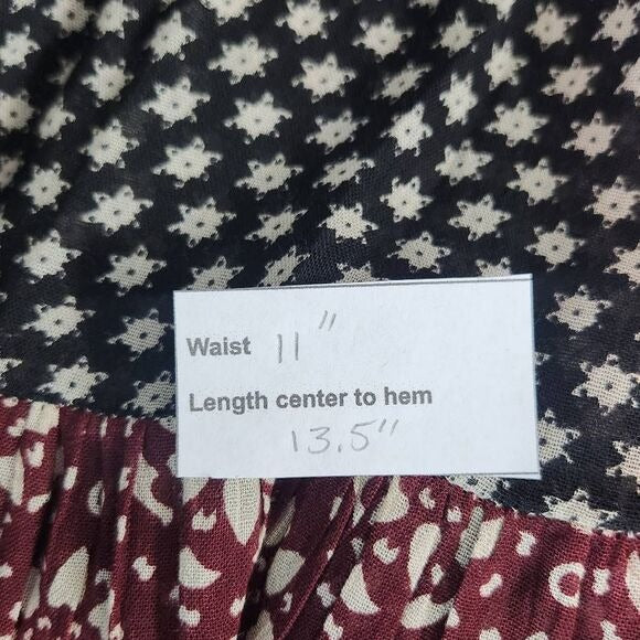 Raga Black and Oxblood Flirty Boho Mini Skirt Size XS Boho Print Full Skirt, New