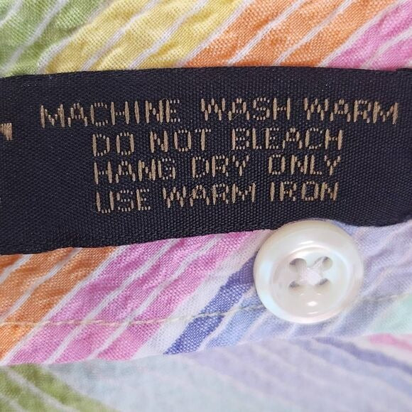Robert Talbott Rainbow Striped Short Sleeve Button-Down Shirt Size XL
