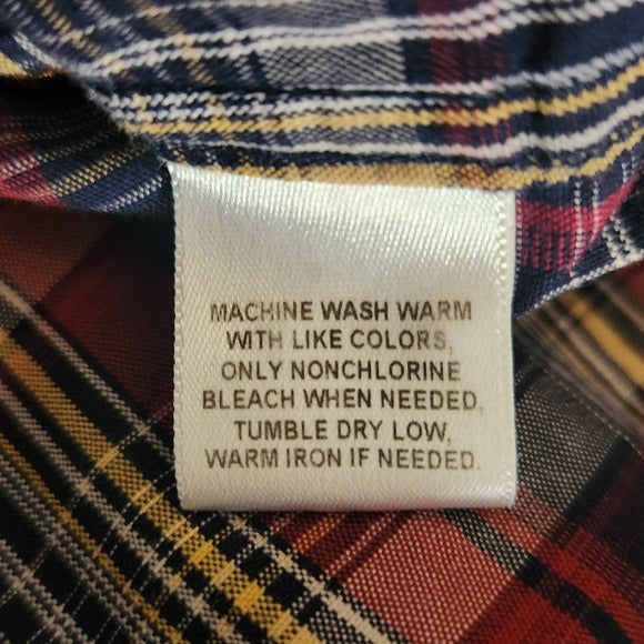 Roundtree & Yorke Casuals Red and Navy Plaid Button Down Shirt Size XL Tall