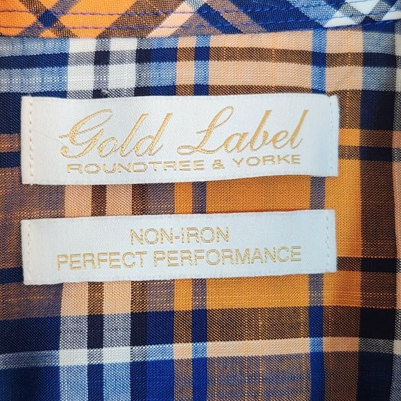 Roundtree & Yorke Orange and Blue Short Sleeve Button Down Shirt Size Large