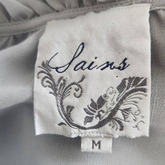 Sains Gray Sheer Boho Blouse with Embellished Sleeves Size Medium