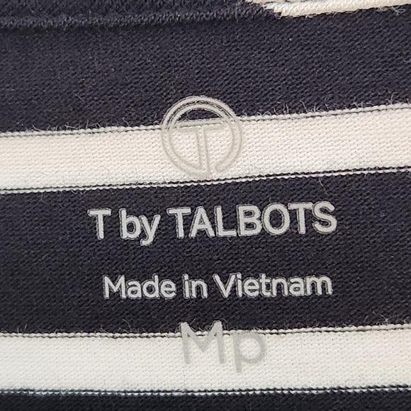 Talbots Black and White Stripe Tee Size Medium Petite