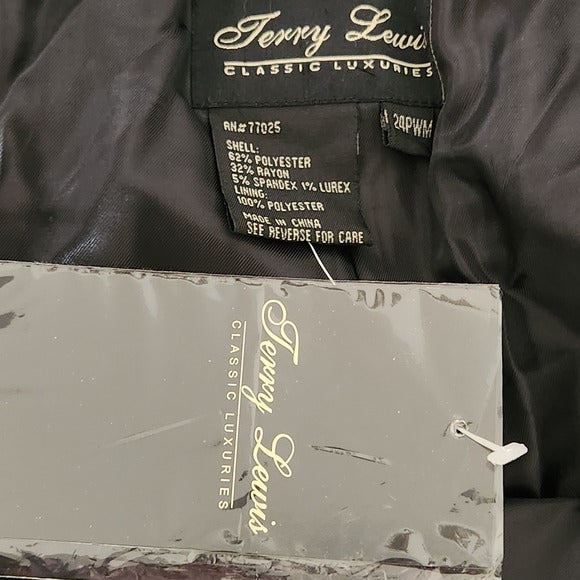 Terry Lewis Black Dress Pants with Metallic Blue Stripe Size 24