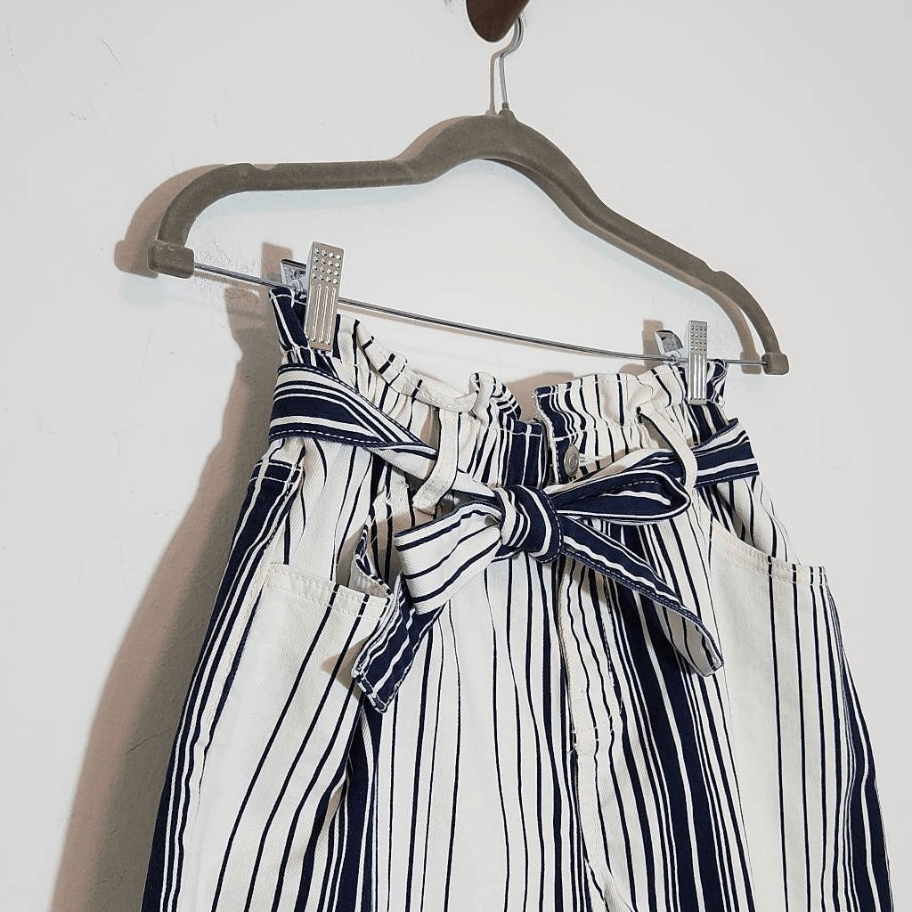 Time & Tru Navy and White Stripe Denim Shorts Size 6 Paper Bag Waist Shorts