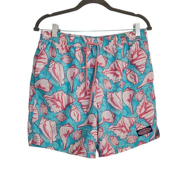 Vineyard Vines Blue and Pink Shell Print Swim Trunks Size Small