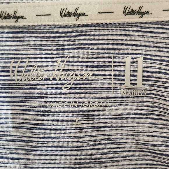 Walter Hagen Mens Blue and White Stripe Polo Golf Shirt Size Large