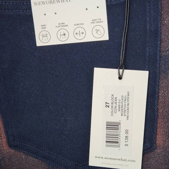 WeWoreWhat Women's Navy and Brown Plaid Jeans Size 27, New