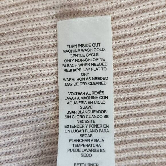 Add a touch of sparkle with this WHBM powder pink knit top featuring subtle gold accents and stylish open shoulders. Cable knit details and shoulder cutouts create a playful, feminine look while keeping it cozy and comfortable for everyday wear.