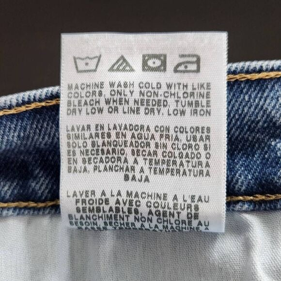 Wrangler men's jeans with medium wash fabric and button and zipper closure.