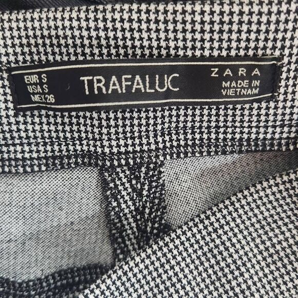 Zara Black Houndstooth Fitted Cropped Pants Size Small Houndstooth Flare Pants