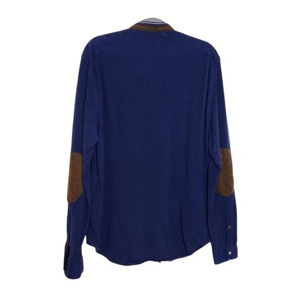 Zara Men's Navy Button-Up Shirt with faux Suede Trim Size XL Casual Navy Top